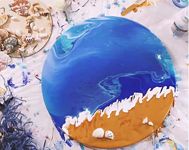 流体画 丙烯流体画因其流动性,多种色彩碰撞在一起,产生不同于油画和水彩的别样质感,不到最后一刻,永远不知道会形成怎样的画面效果。